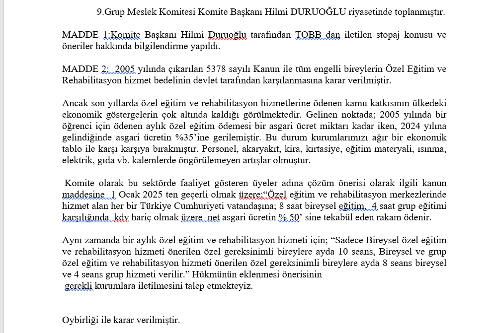 16.12.2024 9. Meslek Komitesi Toplantı Karar Tutanağı