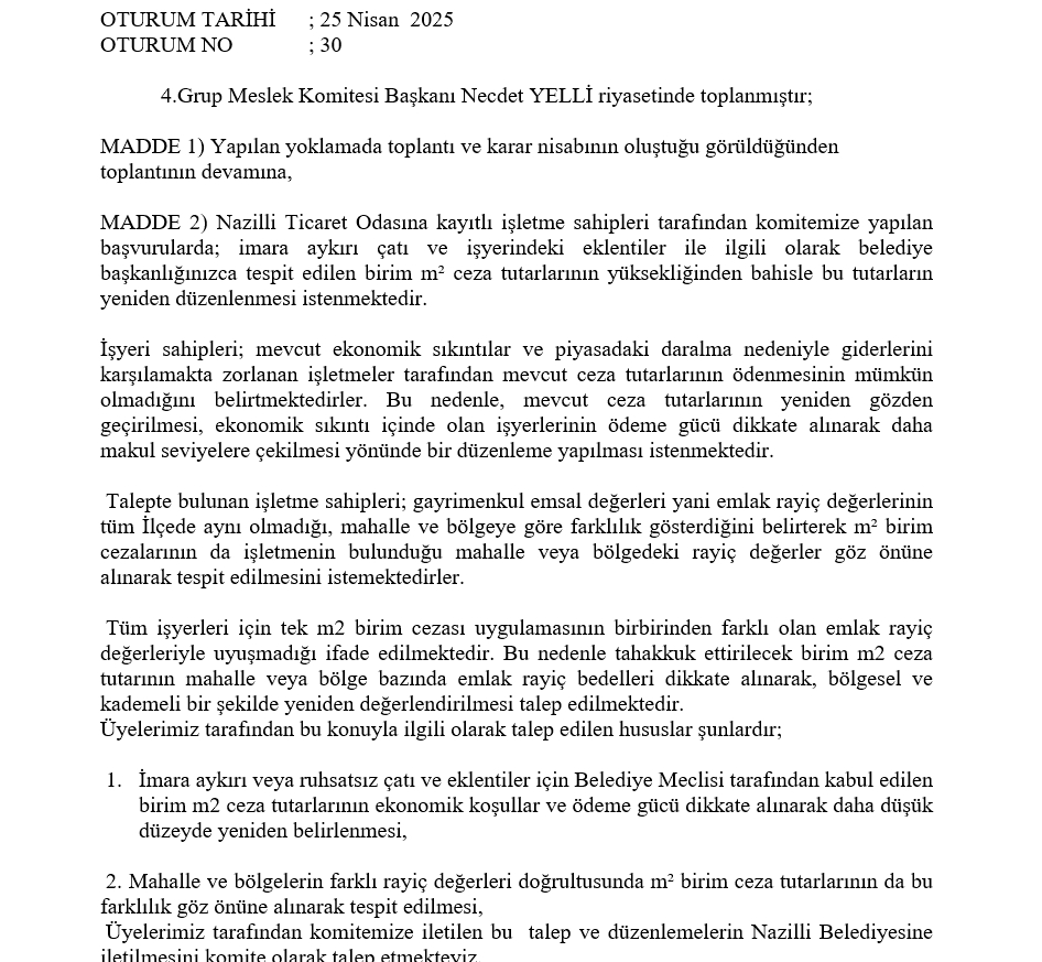 25.04.2025 4. Meslek Komitesi Toplantı Karar Tutanağı