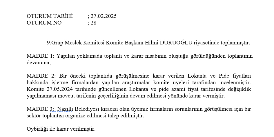 28.03.2025 9. Meslek Komitesi Toplantı Karar Tutanağı