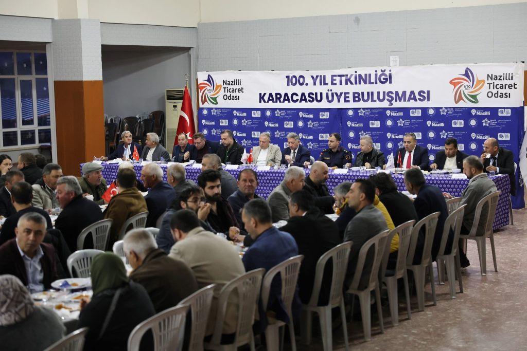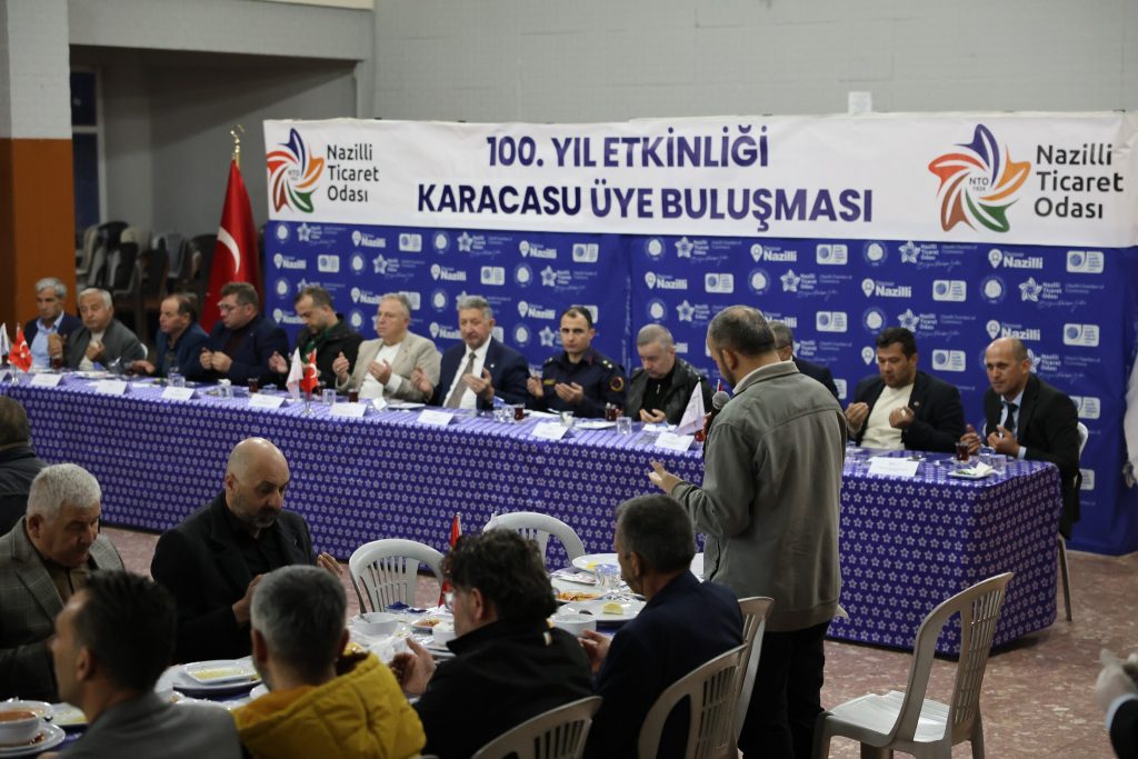 PROGRAMA KARACASU BELEDİYE BAŞKANI MUSTAFA BÜYÜKYAPICI, BAŞKAN YARDIMCISI MURAT BÜYÜKGÜMÜŞ, İLÇE JANDARMA KOMUTANI EMRE ATILGAN, KURUM MÜDÜRLERİ, SİVİL TOPLUM ÖRGÜTLERİNİN TEMSİLCİLERİ VE ODA ÜYELERİ KATILDI.DAVETLİLER TİCARET ODASI YÖNETİM KURULU BAŞKANI NURİ ARSLAN, TARAFINDAN KARŞILANDI. İFTAR PROGRAMINA TİCARET ODASINA KAYITLI OLUP KARACASU’DA FAALİYET GÖSTEREN ÜYELER İŞTİRAK ETTİ. Nuri ARSLAN; Nazilli Ticaret Odasının 100.kuruluş yılı münasebetiyle organize ettiğimiz Üye Buluşma Etkinliği ve İftar Programını Karacasu’da gerçekleştirdik. Nazilli Ticaret Odası üyesinin bulunduğu yere hizmetini götürmeye ve Oda faaliyetleri hakkında bilgi vermek için gayret göstermektedir. Nazilli Ticaret Odası gücünü üyelerinden alan örnek bir meslek kurumudur. Karacasu’da faaliyet gösteren üyelerimiz ile bir araya geldik. Nazilli Ticaret Odası mesafe gözetmeksizin üyesi neredeyse orada olmak amacındadır. Üyelerimiz ile her yıl ilçe toplantılarında bir araya geliyoruz. Bu toplantıların devamı olarak Ramazan ayında Karacasu’da hem misafir hem ev sahibi olduk. Amacımız her fırsatta üyemizin yanında olmak, sorunlarını öğrenmek, karşılıklı fikir alış verilinde bulunmaktır. Onların talep ve sorunları Odamızın faaliyet ve çalışmalarına yön vermektedir. Odamız tarafından gerçekleştirilen faaliyet ve projeler üyelerimizin talepleri veya ihtiyaçları doğrultusunda yapılan işlerdir. Bu nedenle onların fikirlerine önem veriyor, ayrı ayrı düşünce ve taleplerini almaya çalışıyoruz. Nazilli Ticaret Odası Buharkent,Bozdoğan,Karacasu,Kuyucak,Sultanhisar ve Yenipazar ilçelerinde yaptığı üye buluşma toplantıları ve etniklikler ile sorunları tespit ederek lobi faaliyetleriyle konuları ilgili kurum ve makamlara iletmektedir. Odanın çalışma prensibi tamamen üyelerinin gereksinimleri ve talepleri üzerine gerçekleştirilmektedir.Diğer ilçelerimizde de 100.yıl üye buluşma toplantılarına devam edeceğiz. Bir arada bulunmaktan, birlikte olmaktan mutluyuz-dedi. Ticaret Odasına kayıtlı üyelerde ; Nuri ARSLAN nezdinde Ticaret Odası yetkili kurullarına ve emeği geçen herkese teşekkür ettiler.